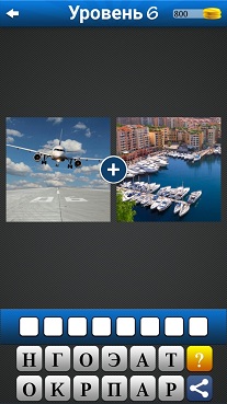 2 картинки 1 слово - 6 уровень 1. Самолет, идущий на посадку 2. Морской порт кораблей Ответ: АЭРОПОРТ |