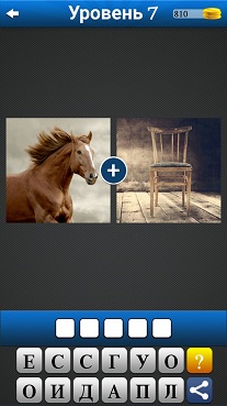 2 картинки 1 слово - 7 уровень 1. Бегущая лошадь 2. Пустой стул посреди комнаты Ответ: СЕДЛО |