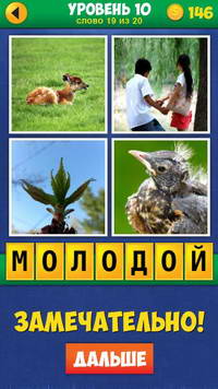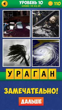 Эта головоломка очень увлекательна, справившись с прохождением одной 4 фото 1 слово, вам обязательно захочется поиграть в подобную игру еще. В данной статье мы дадим вам ответы на уровень №10 для игры 4 фото 1 слово Еще Слова (многим она известна как 4 фото 1 слово Экстра). В этом уровне вам предлагают угадать 20 слов. Если прохождение 4 фото 1 слово вызвало у вас трудности, вы можете заглянуть в приготовленную нами шпаргалку.