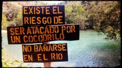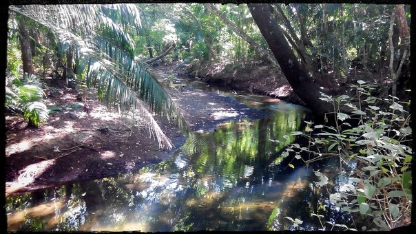 На берегу реки стоит интересный щит, предупреждающий о следующем: "существует риск быть атакованным крокодилом. Купание в реке запрещено". Сразу наводит на мысли, не правда ли? Крокодилов мы так и не видели, но по заверениям местных, небольшие кайманы иногда забредают в эти края. Также как и представители семейства кошачьих иногда охотятся неподалёку. Конечно, больше ночью, и не на людей, но сам факт очень неожиданный...