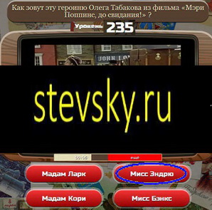 Уровень 235 Как зовут эту героиню Олега Табакова из фильма "Мэри Поппинс, до свидания!"?