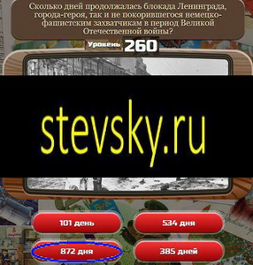 Уровень 260 Сколько дней продолжалась блокада Ленинграда, города-героя, так и не покорившегося немецко-фашистским захватчикам в период Великой Отечественной войны?