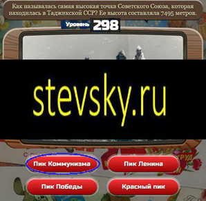 Уровень 298 Как называлась самая высокая точка Советского Союза, которая находилась в Таджикской ССР? Её высота составляла 7495 метров.