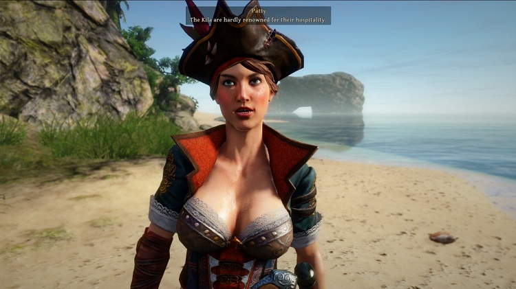В древнем храме спрятано величайшее сокровище Южных морей. Пэтти будет постоянно сопровождать нас и активно помогать в бою с местной фауной. За убийство врагов и выполнение заданий начисляется «Слава», которая используется для совершенствования черт характера персонажа. Зачистив берег от различных врагов, возвращаемся к тропе и начинаем продвигаться вглубь острова.